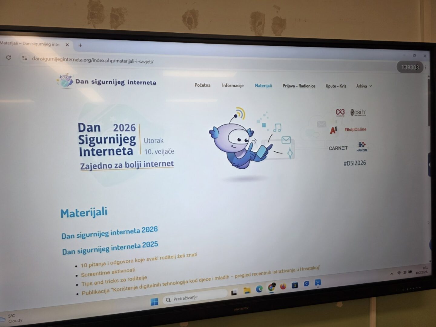 Dan sigurnijeg interneta obilježava se svake godine s ciljem promicanja sigurnije i odgovornije uporabe digitalnih tehnologija i mobilnih uređaja, u prvom redu među djecom i mladima. Glavni pokretač za obilježavanje istoga na nacionalnoj razini je Centar za sigurniji Internet (CSI) koji za sve zainteresirane svake godine pripremi edukativne materijale za radionice na nastavi, kviz za djecu i mlade, podcaste za roditelje te događaje uživo. Ovogodišnji Dan sigurnijeg interneta obilježio se u utorak, 10. veljače 2026. godine pod sloganom “Zajedno za bolji internet“. Kroz razgovor i radionice s djecom pobliže smo objasnili kakve opasnosti i prijetnje postoje na internetu.