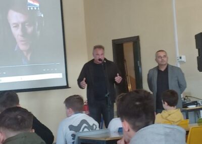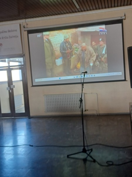 U petak, 14. 11. 2025., u našoj školi održali su predavanje branitelji Vukovara Neno Šantek i Dragutin Špac koji su bili zatočenici u srpskom logoru u vrijeme Domovinskoga rata. Njihove potresne ispovijesti i dokumentarni film “Glavu dolje, ruke na leđa” nikoga od učenika nisu ostavile ravnodušnima.
