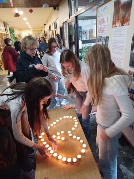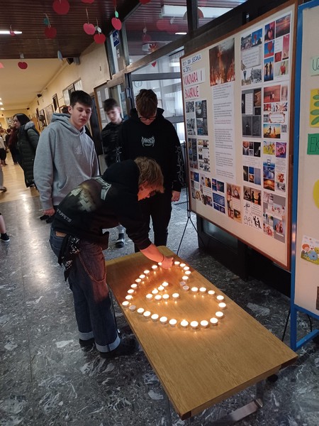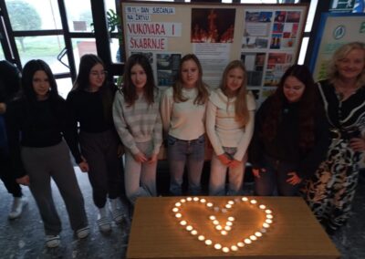 U spomen na poginule, ranjene i nestale branitelje u predvorju škole postavili smo pano s citatima iz knjige Priče iz Vukovara Siniše Glavaševića te zapalili svijeće.