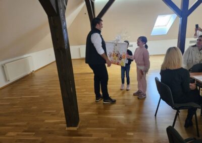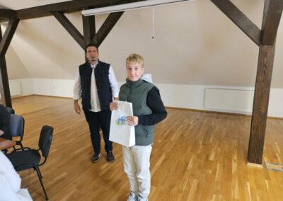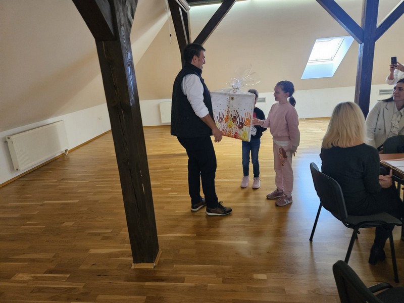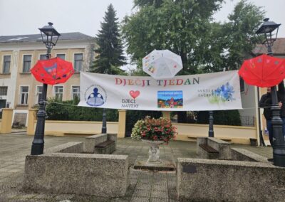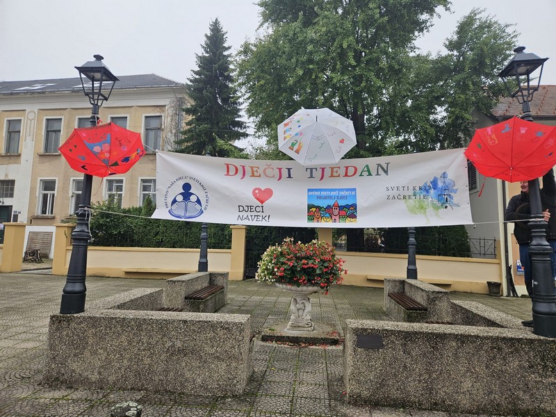 Dječji tjedan tradicionalno je započeo posjetom Dječjeg vijeća načelniku Općine, g. Marku Kosu. Dječjim vijećnicima pridružili su se i polaznici produženog boravka te su ukrasili trg veselim kišobranima na kojima su ispisali poruke prijateljstva. Nakon toga su i načelniku uručili prigodan poklon. Načelnik općine također je uručio poklone najuspješnijim učenicima koji su u prošloj školskoj godini sudjelovali na državnim natjecanjima, a to su Leo Čvek, Bartol Zagorec i Roko Novački.