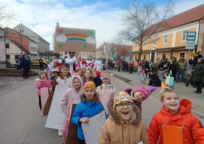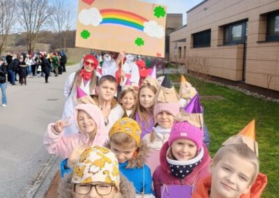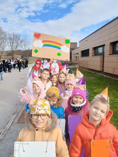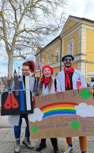 U nedjelju, 15. veljače, učenici produženog boravka 1. – 4. razreda sudjelovali su na fašničkoj povorci u Svetom Križu Začretju. Učenici 1. i 4. razreda su predstavljali naš školski pribor kojim se svaki dan koristimo u školi, a učenici 2. i 3. razreda su bojali svijet bojama uz pjesmu Život nije siv.