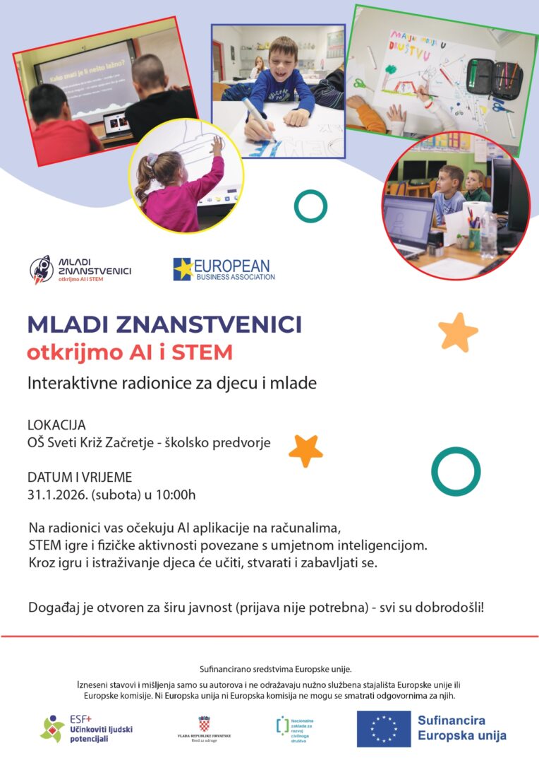 Pozivamo svu zainteresiranu djecu, mlade, roditelje i znatiželjnike da nam se pridruže na posebnom interaktivnom događaju u sklopu projekta Mladi znanstvenici – Otkrijmo AI i STEM!