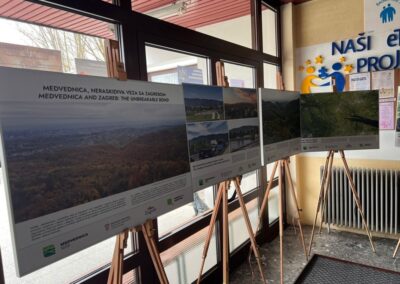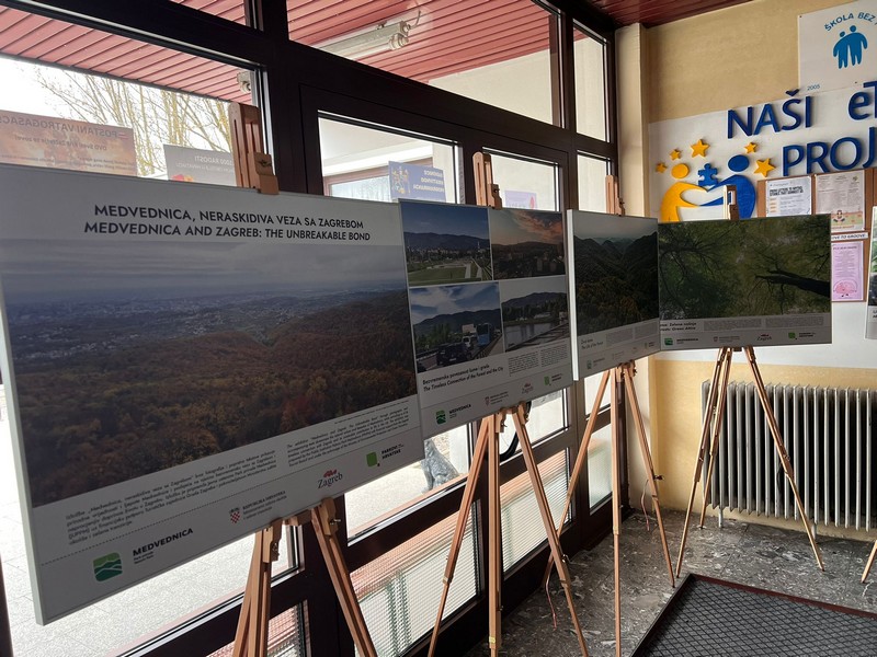 Naša škola je ugostila izložbu „Medvednica, neraskidiva veza sa Zagrebom“ koja podsjeća na vječnu povezanost Medvednice i Zagreba. Cilj izložbe je promocija Parka prirode Medvednica, podizanje svijesti o važnosti zaštite prirode, ali i potrebe čovjeka da ostvari vezu s prirodom koju je suvremenim načinom života izgubio. Sastoji od 20 panela koji su postavljeni na drvenim slikarskim stalcima.