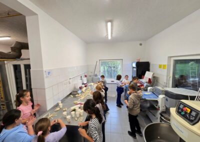 Učenici su imali priliku promatrati cijeli proces nastanka kruha, od pripreme tijesta do mirisnog i zlatnopečenog peciva. Posebno ih je razveselila mogućnost da se i sami okušaju u izradi pekarskih proizvoda. Uz veselu pjesmu i puno mašte, njihovi su prsti oblikovali tijesto u razne zanimljive oblike.