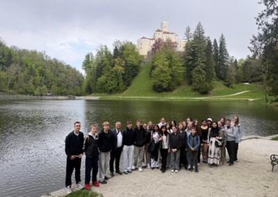 U utorak su naši gosti prisustvovali kulturnom glazbenom programu tijekom kojeg su im prezentirani raznoliki glazbeni talenti naših učenika. Osobito iznenađenje je izazvala orkestralna izvedba tradicionalne finske polke. Uslijedile su aktivnosti za međusobno upoznavanje i povezivanje učenika, prezentacije zemalja, ručak i posjet Muzeju krapinskih neandertalaca. Nakon obilaska, učenici su sudjelovali u muzejskoj radionici, a onda se zaputili prema Trakošćanu kojeg su razgledali u slobodnom obilasku. Planirano druženje u park-šumi dvora omeli su kiša i vjetar, ali je uspješno obavljeno fotografiranje pokraj jezera koje je prekrasno neovisno o vremenskim uvjetima.