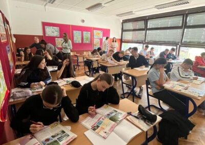 Srijeda je bila predviđena za upoznavanje hrvatskog nastavnog procesa – gosti su sudjelovali na nastavnim satima engleskog jezika i kemije, a nakon toga su gosti sami mogli odabrati željeni predmet na kojem su sudjelovali. Zajedničko je bilo i sudjelovanje na izvannastavnoj aktivnosti Ručni rad na kojoj su pojedinci iskazali zavidnu vještinu. Popodne je realiziran odlazak vlakom u Zagreb i upoznavanje centra grada sudjelovanjem u aktivnosti Zagreb Time Travel. Naši učenici su dobili priliku „brinuti“ za nove prijatelje tijekom kratkog slobodnog vremena koje su dobili na glavnome trgu.