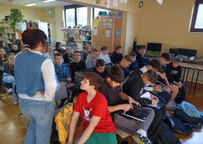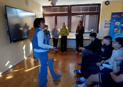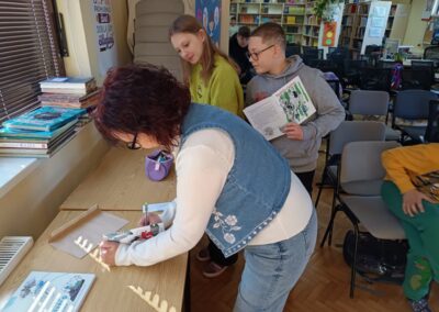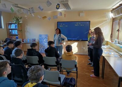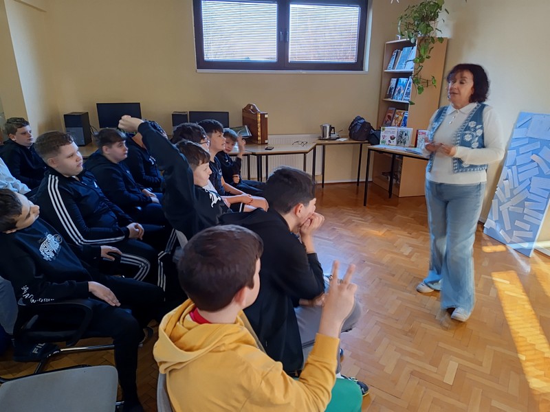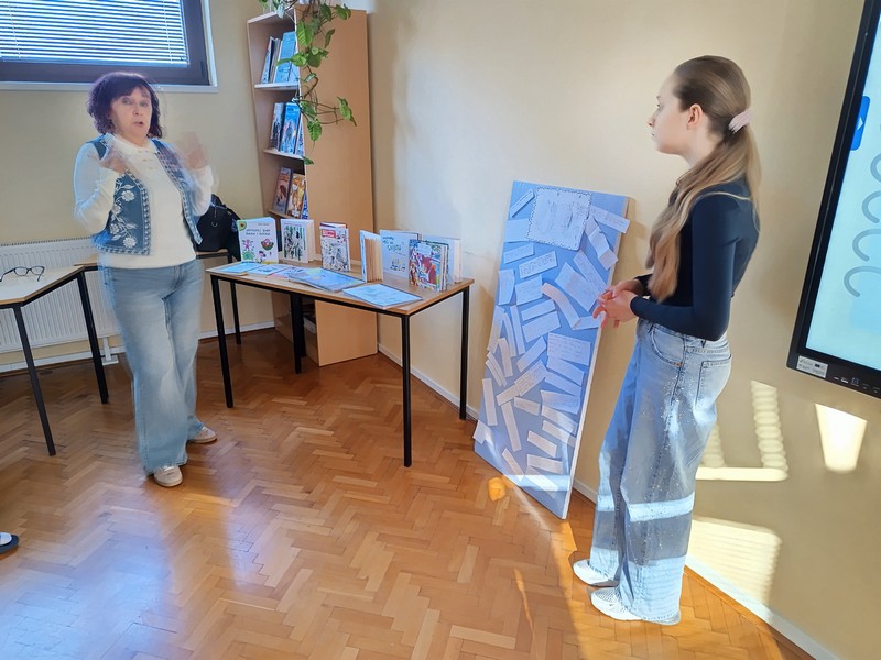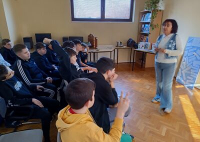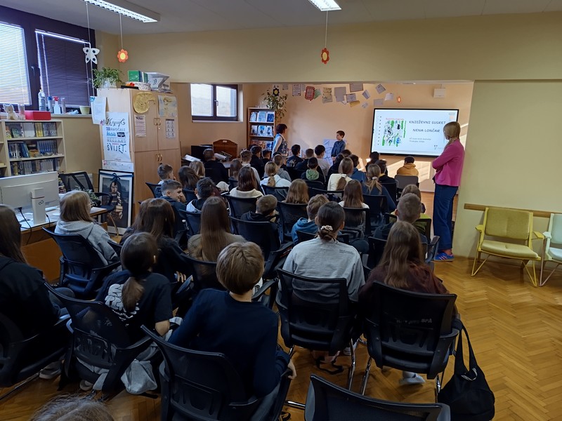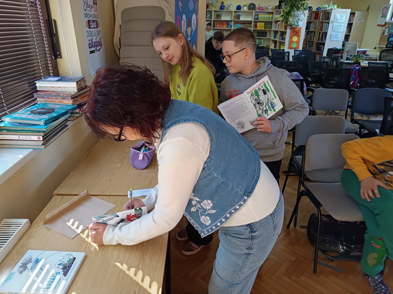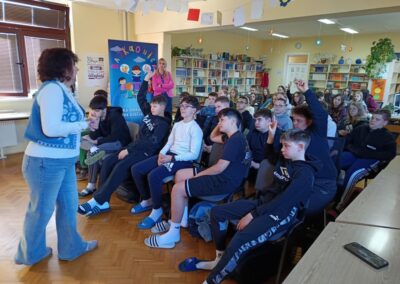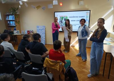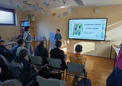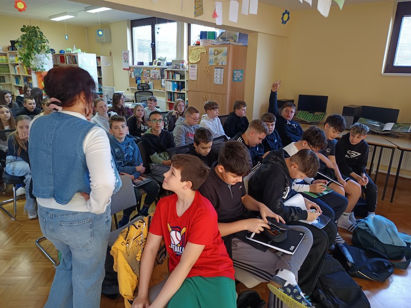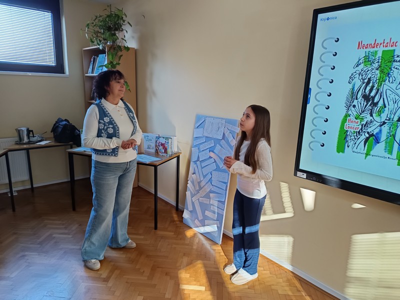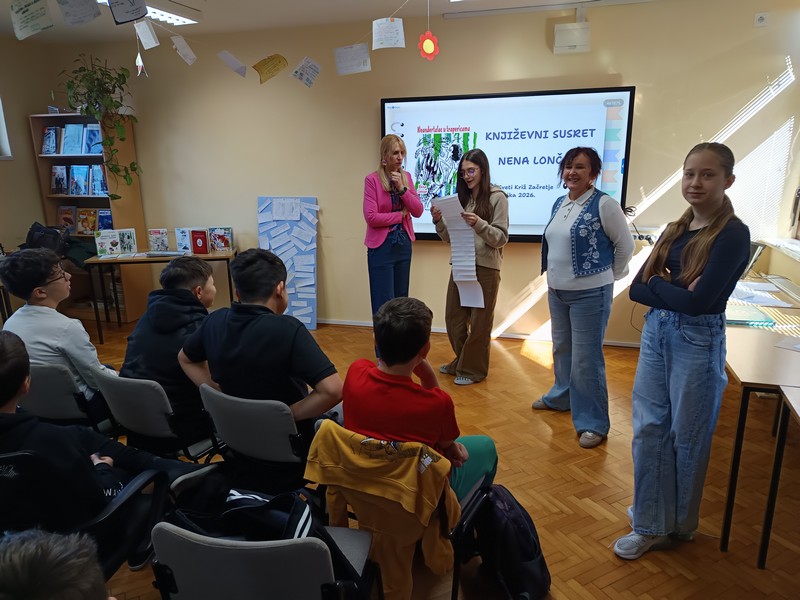 Učenici šestih razreda su u četvrtak sudjelovali na književnom susretu s književnicom Nenom Lončar. Oba šesta razreda su se tijekom drugog polugodišta pripremali za ovaj dan čitajući knjigu Neandertalac u trapericama. Svi su sudjelovali u izradi dva grafička romana o pročitanoj knjizi te u izradi pozivnica za književni susret. Osim toga, pisali su i bilješke o sebi kao ilustratorima spomenutih grafičkih romana. Svi učenički radovi bili su izloženi u knjižnici tijekom susreta koji je trajao dva školska sata. Učenici su u uvodnom dijelu imali puno pitanja za književnicu, a nakon toga je uslijedio međurazredni kviz u kojem je književnica svojim djelima nagradila sudionike. Tijekom drugog školskog sata su učenici sudjelovali u igri pisanja priče te su tako nastale dvije razredne priče. Učenici uključeni u Radijsku grupu spremno su čekali gošću za snimanje radijske emisije, a gotovu emisiju moći ćete poslušati nakon montaže snimljenih materijala.