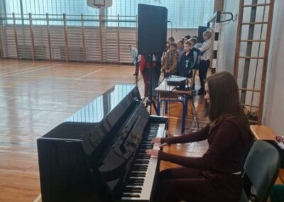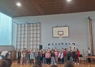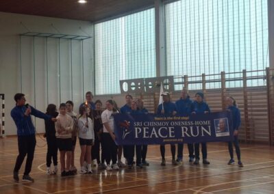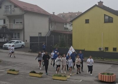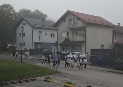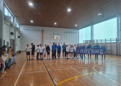 Naši učenici su izradili likovne radove s tematikom mira i prijateljstva. Njima smo ukrasili školu, a pripremili smo i program dobrodošlice. Skupina učenika sportaša dočekala je trkače na Trgu i zajedno s njima, noseći upaljenu baklju, dotrčali do škole gdje su ih čekala ostali učenici koji su na taj način odali počast ovoj vrijednoj manifestaciji i poruci koju ona šalje. Pripremljen je i kratak dječji kulturno-umjetnički program nakon kojeg su gosti održali svoj program za učenike.