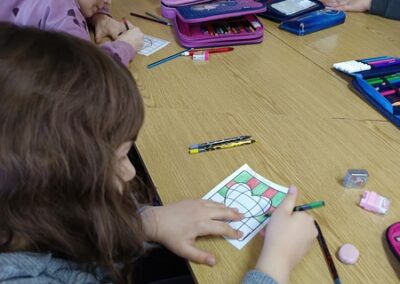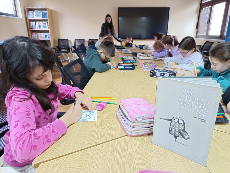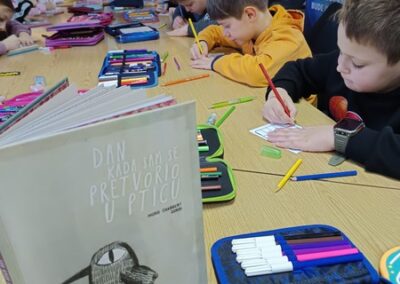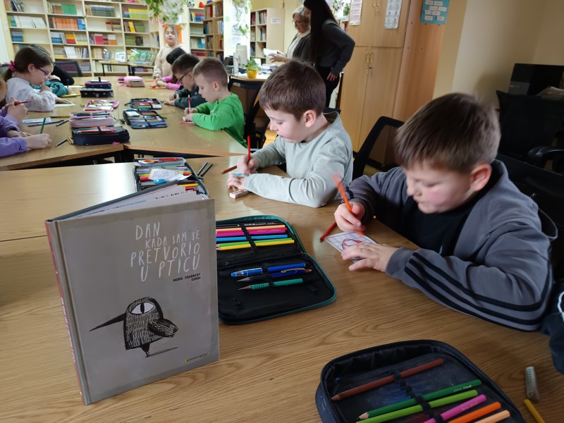 Valentinovo je bilo u subotu pa smo ga u školi obilježili u ponedjeljak. U knjižnici su treći razredi sudjelovali u valentinovskim radionicama na kojima smo zajedno naglas interpretirali i komentirali suvremenu slikovnicu Dan kada sam se pretvorio u pticu autorice Ingrid Chabbert. Ponovili smo znanje o kontrastima boja i primijenili ga na uređivanju valentinovskih srca te izradili pano.
